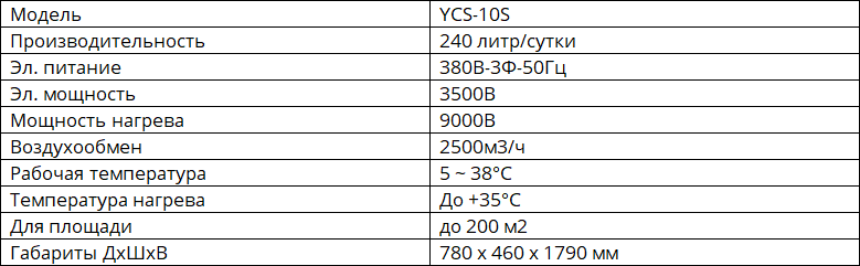 YCS-10S Промышленный осушитель с нагревателем производительностью 240 литров в сутки.