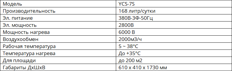 YCS-7S Промышленный осушитель с нагревателем производительностью 168 литров в сутки.